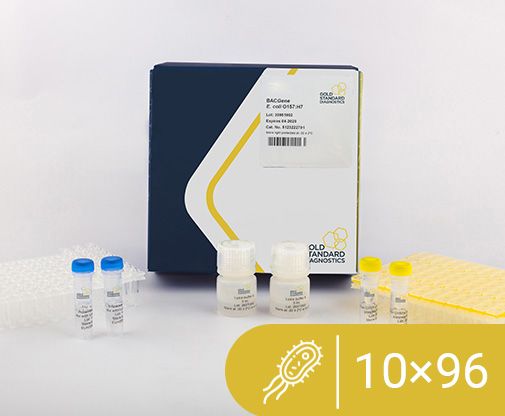 The BACGene E. coli O157:H7 real-time PCR detection kit provides materials for a rapid and reliable detection of O157:H7 serogroup with which has caused several foodborne outbreaks. This kit allows the detection and identification of O157:H7 with the option of reporting O157 (excluding H7) or O157:H7 specifically. In combination with the BACGene Mplex SEROtype kits this assay enables the detection of all of the Top7 STEC. Detects DNA in several food products and environmental samples from food production facilities. The kit is intended to be used in analytical laboratories and may also be applied for other purposes in food product research and analysis fields, e.g. microbial monitoring of production processes.