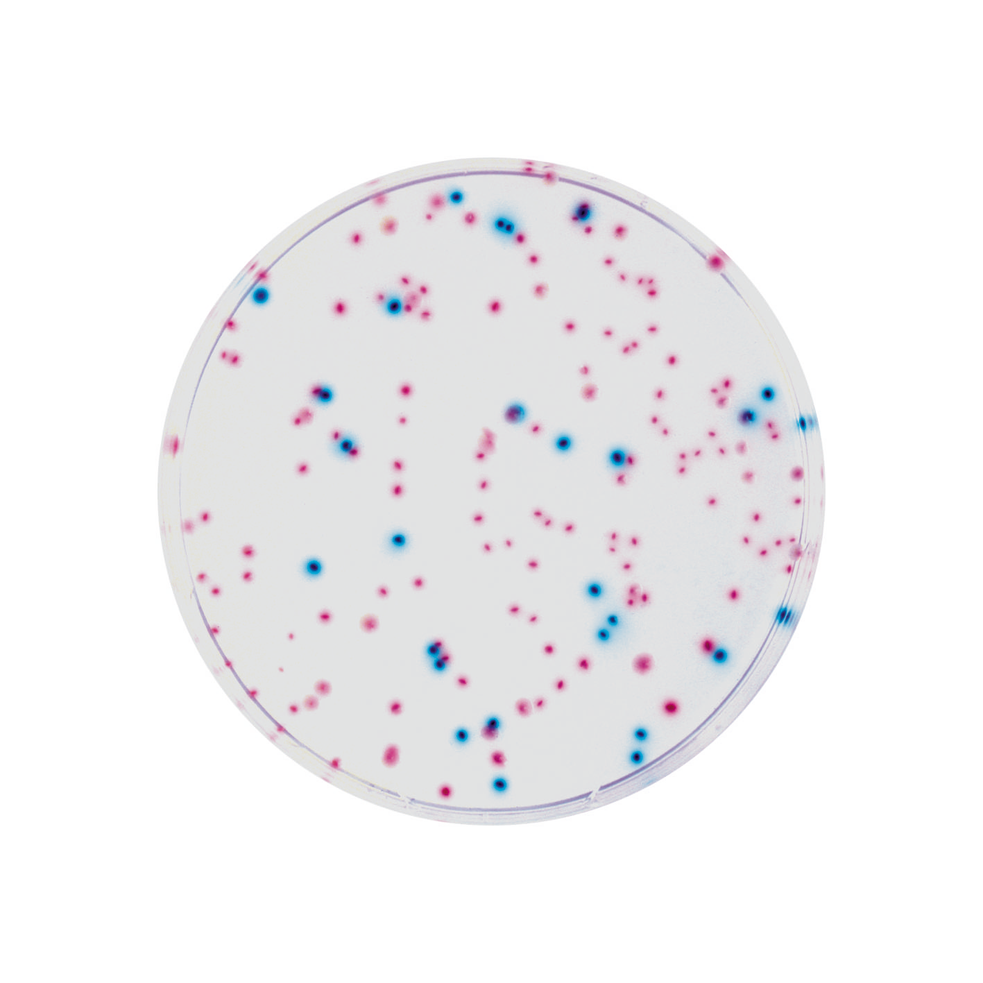 2. Dễ đọc nhờ độ tương phản màu sắc cao giữa các khuẩn lạc. Không có sự trộn lẫn giữa các màu (không giống như một số môi trường chromogen trên thị trường). Khuẩn lạc có màu tím nhạt hoặc xanh (không có màu xanh kim loại hoặc tím).